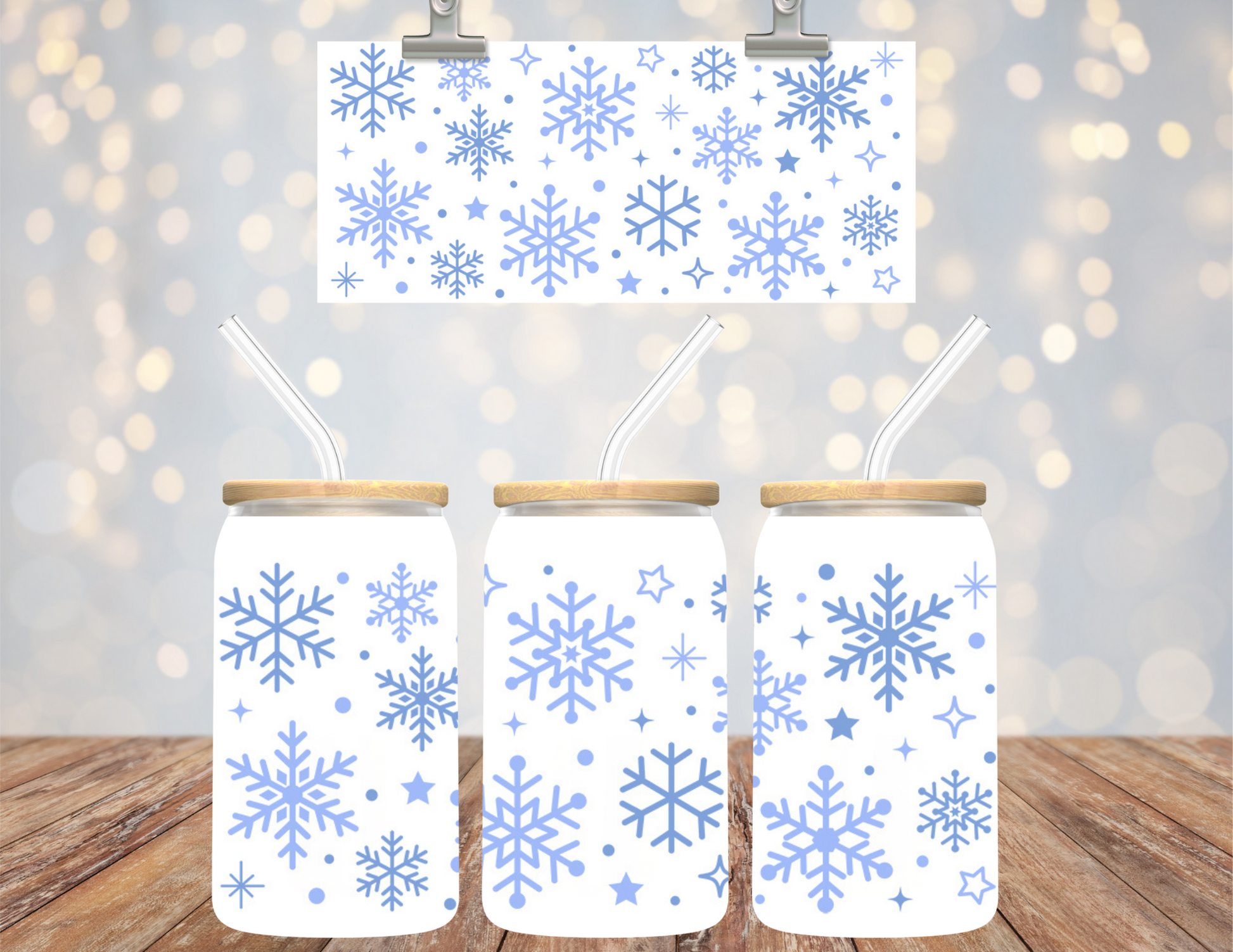 16 oz Uv Dtf Wrap Blue Snowflake Christmas