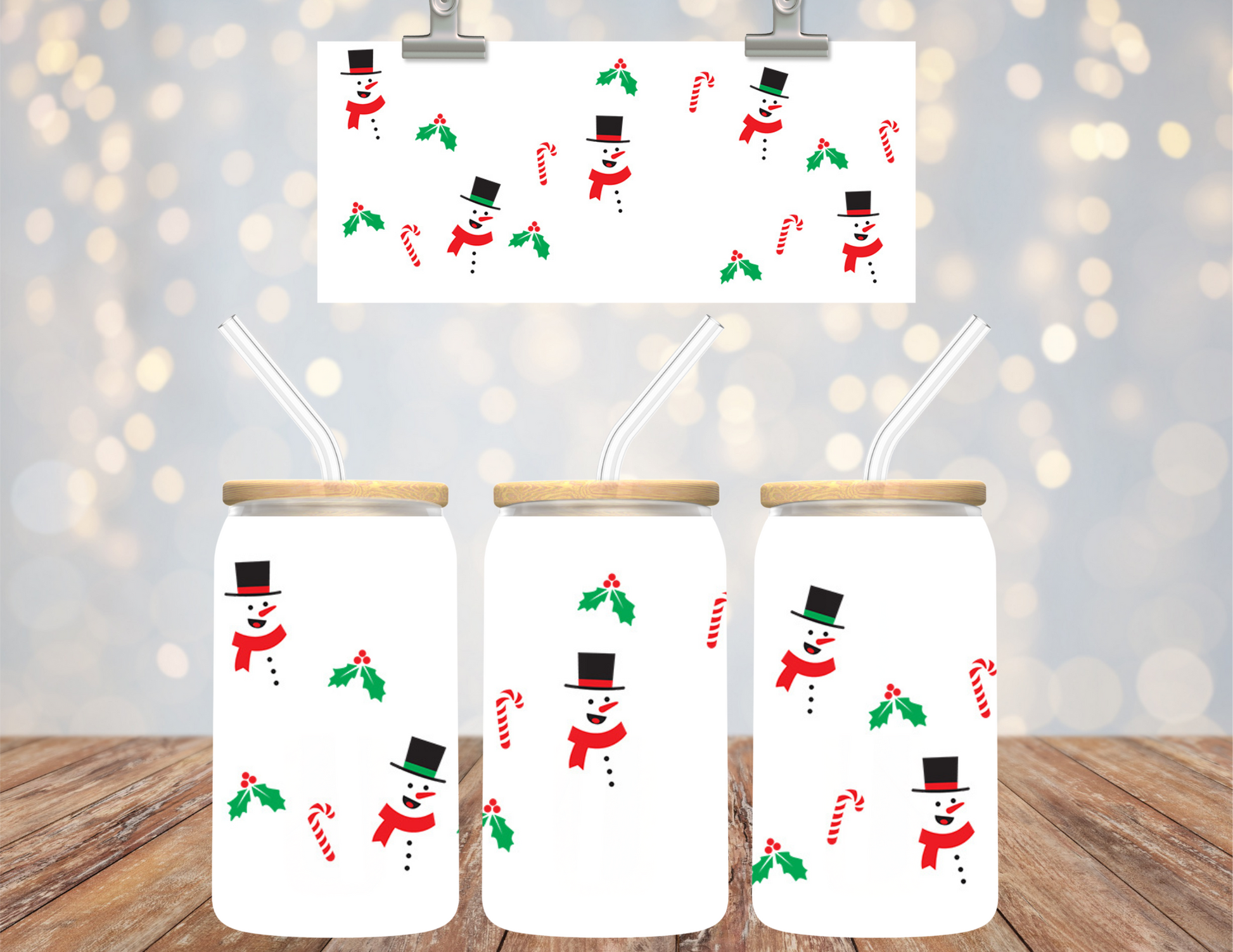 16 oz Uv Dtf Wrap Christmas Snowmen