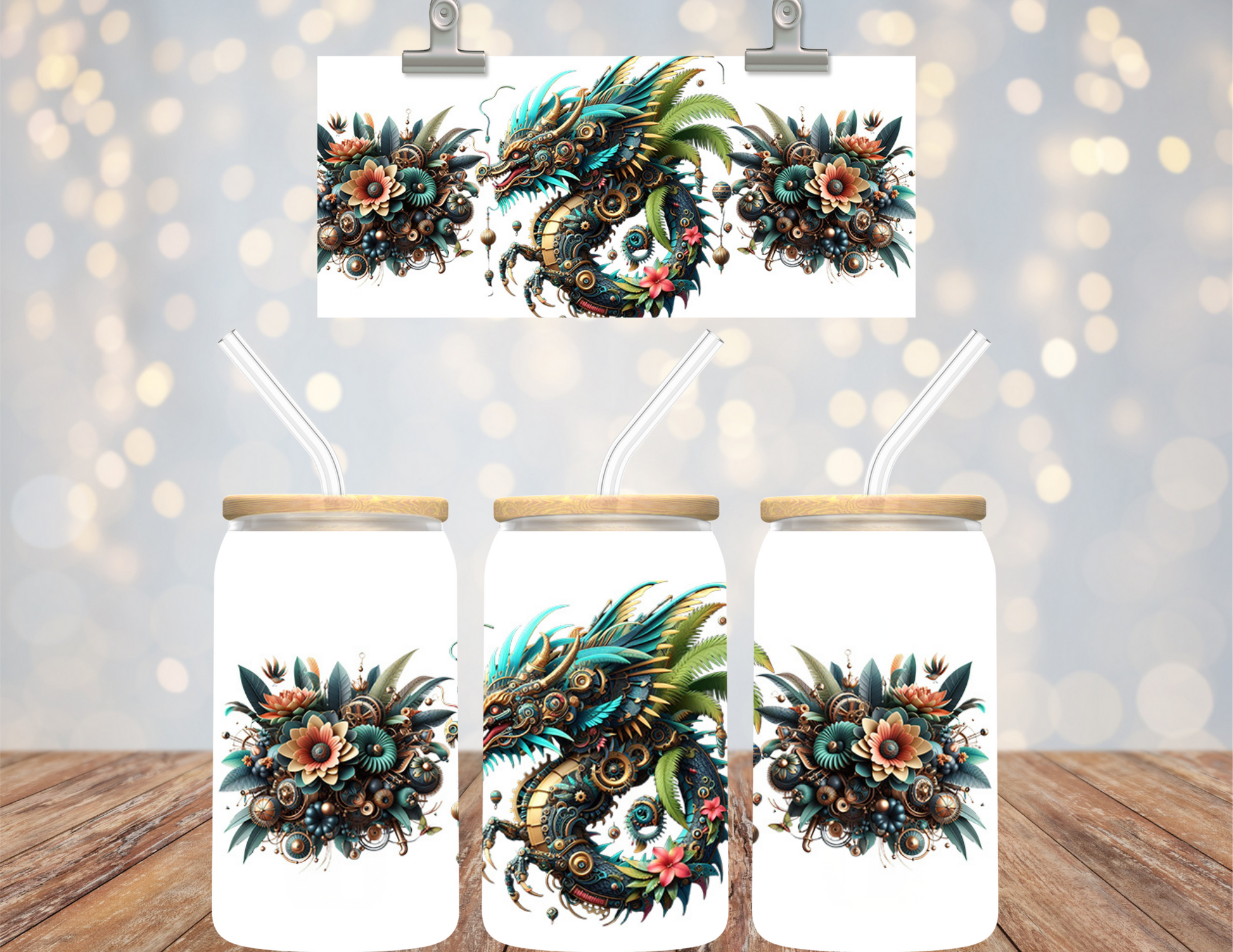 16 oz Uv Dtf Cup Wrap Dragon Floral 728