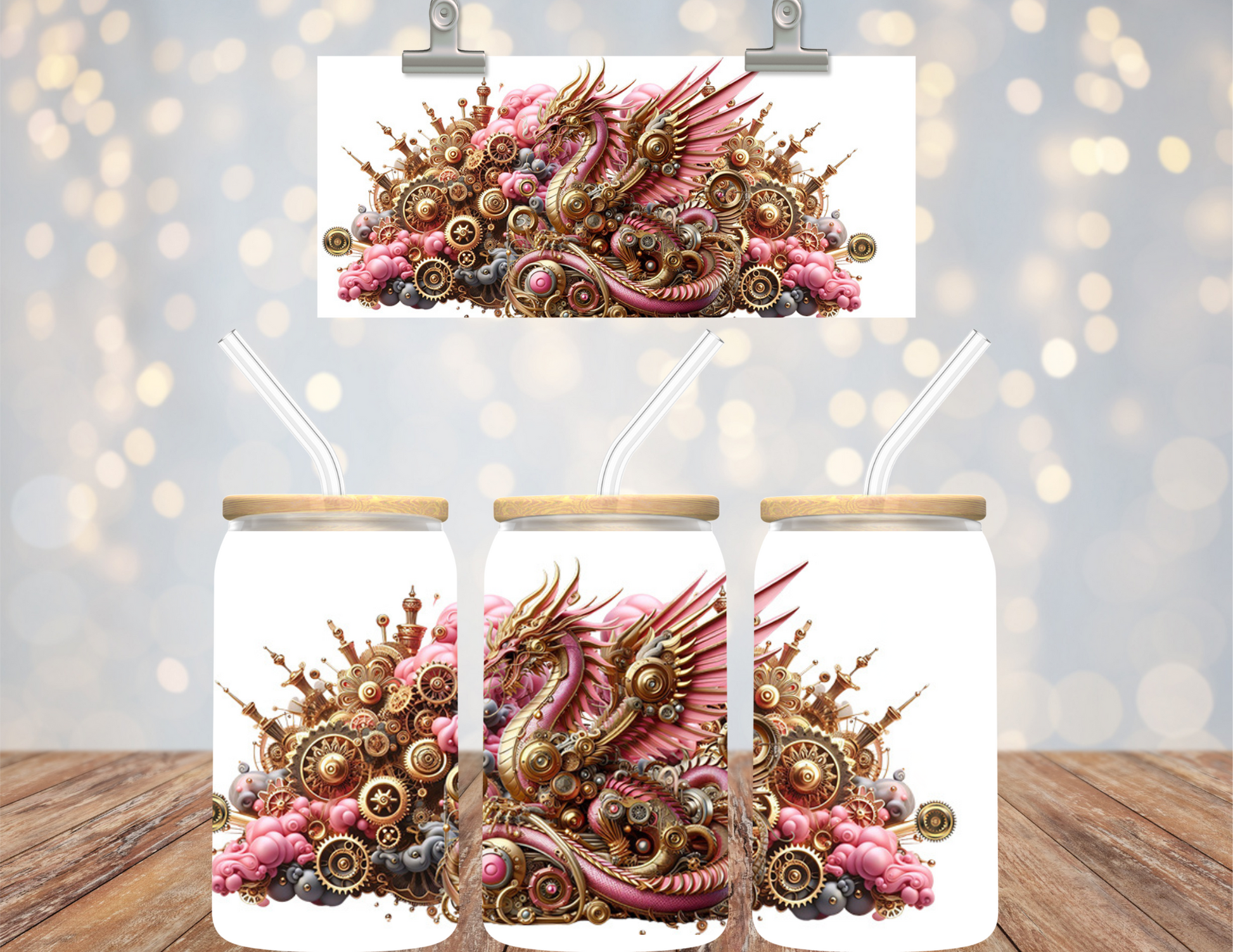 16 oz Uv Dtf Wrap Pink Steampunk Dragon