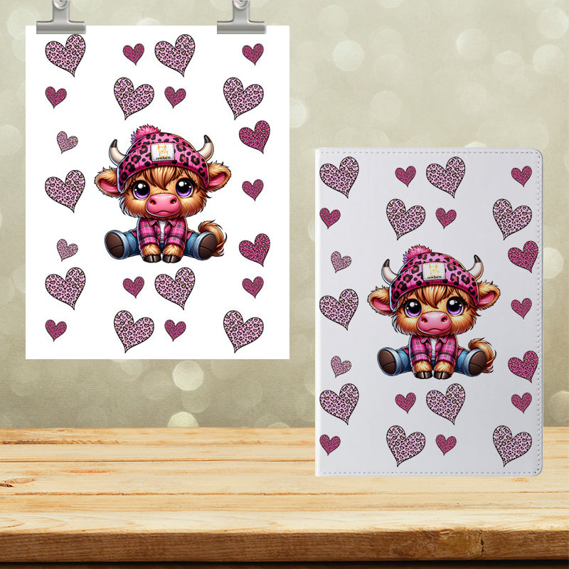 A5 Notebook UVDTF Wrap Cute Cow with Hearts 7091