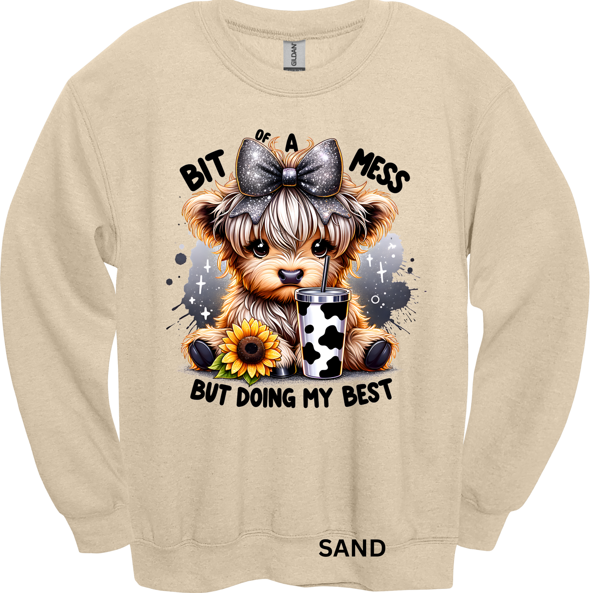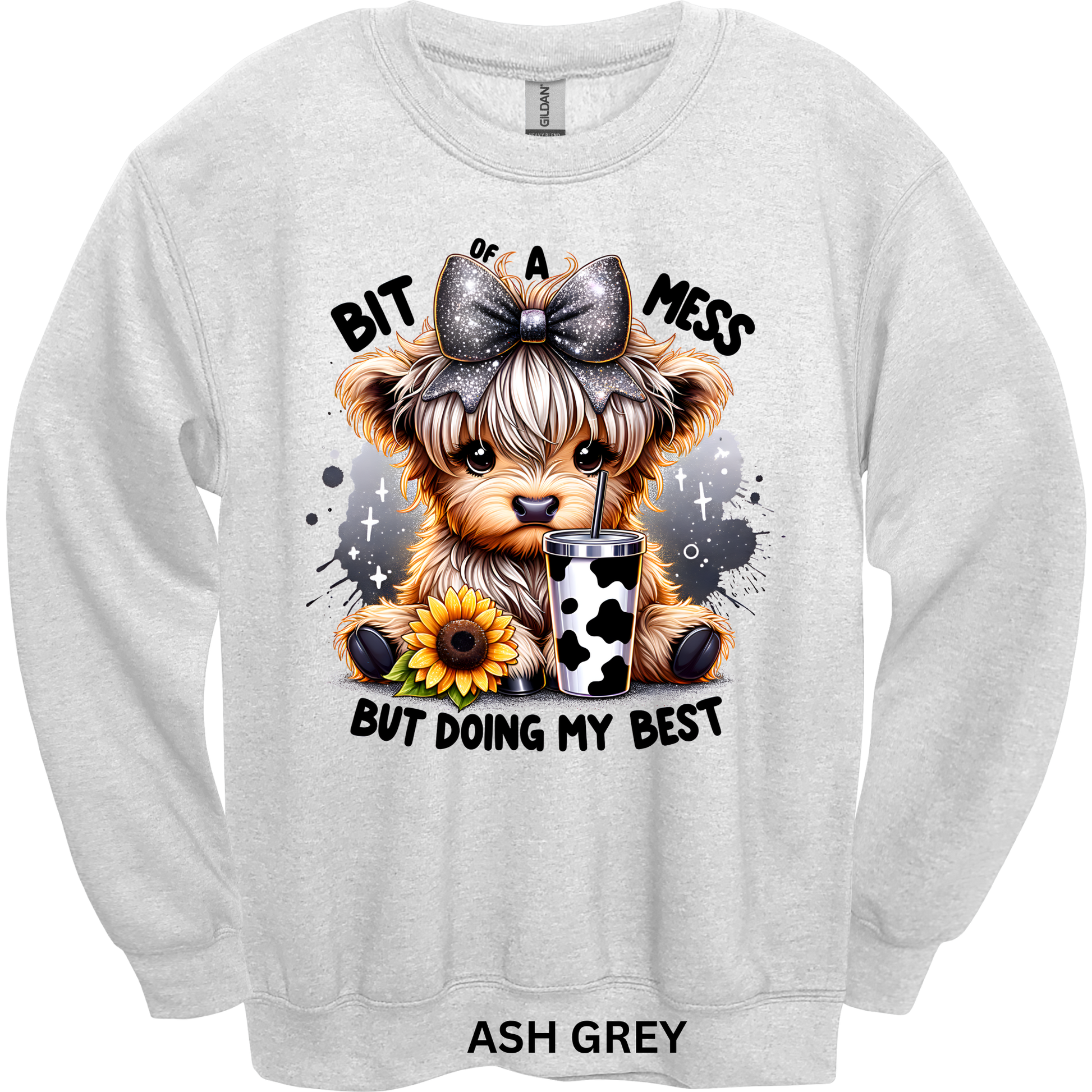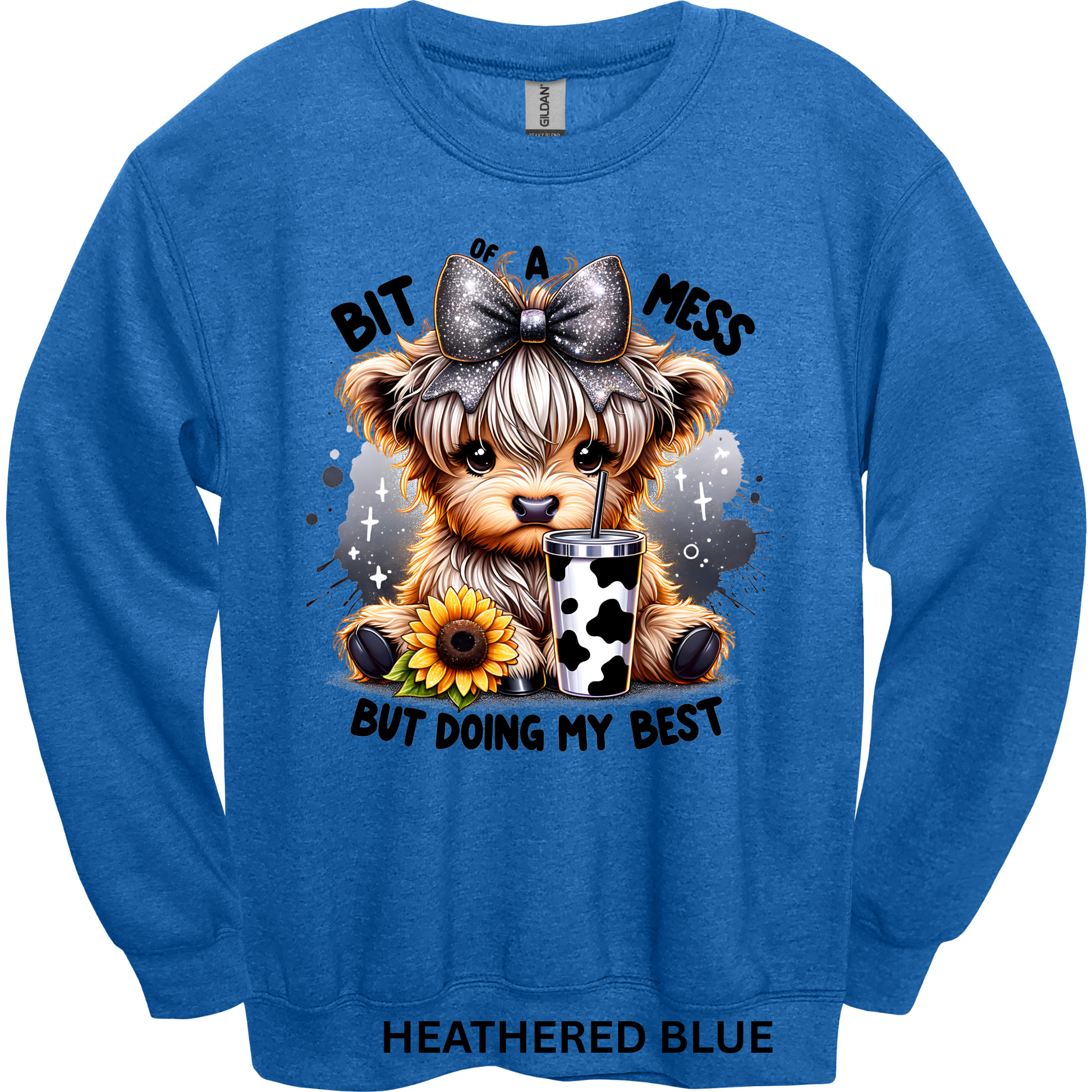Crewneck Sweatshirt Bit of a Mess Cute Cow 480