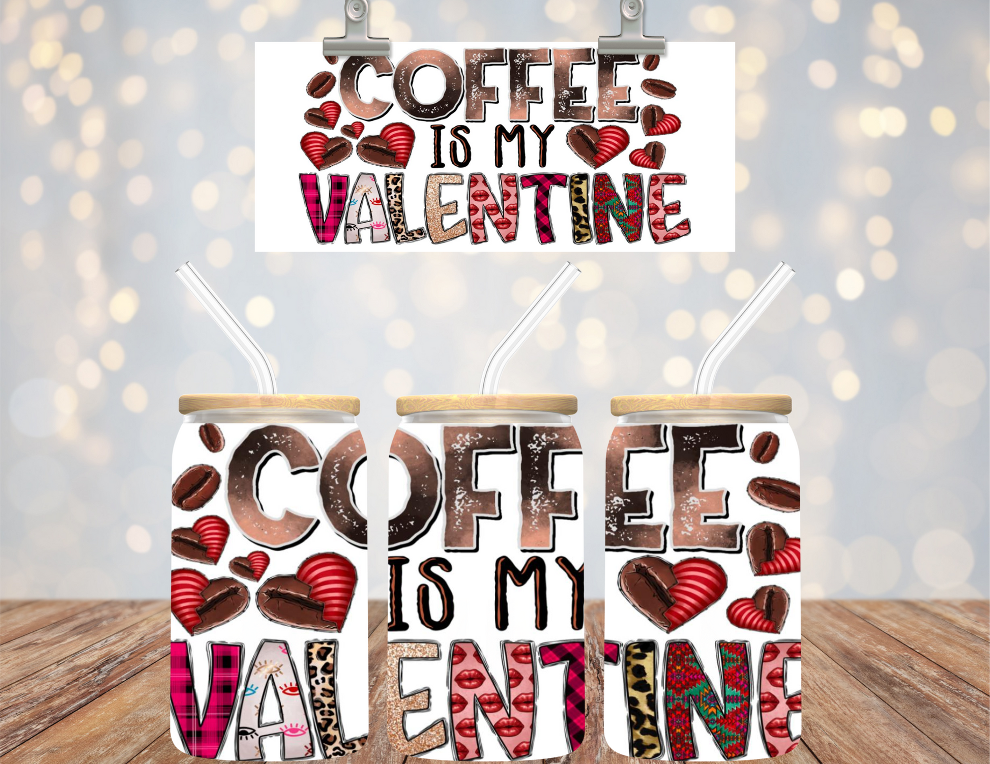 UV DTF 16 oz Cup Wrap Coffee Is My Valentine 482