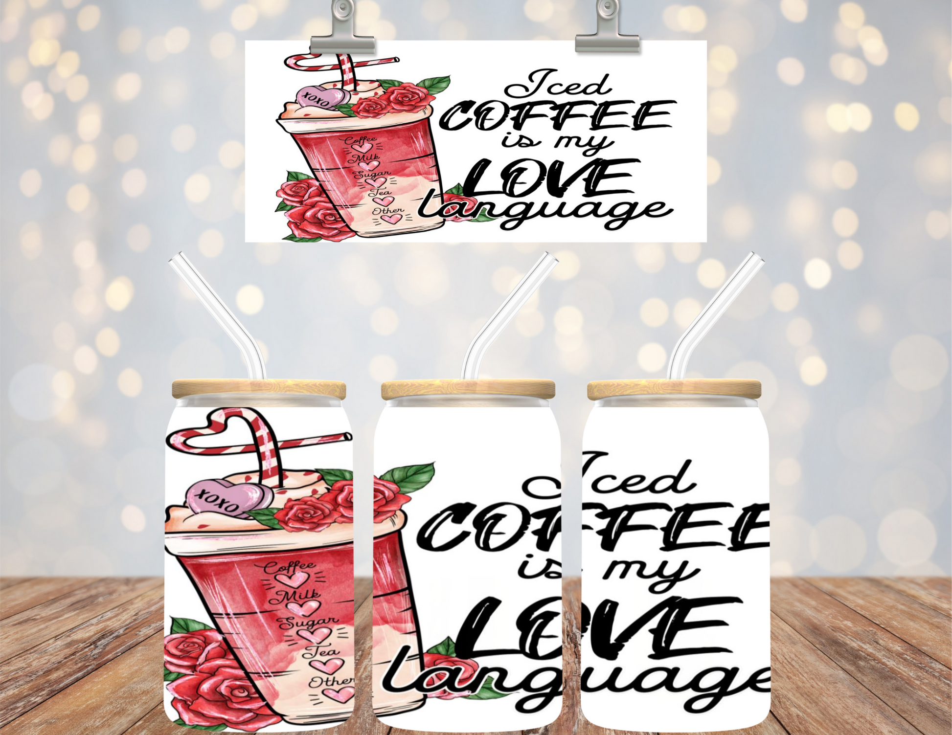 UV DTF 16 oz Cup Wrap Iced Coffee is My Love Language 475