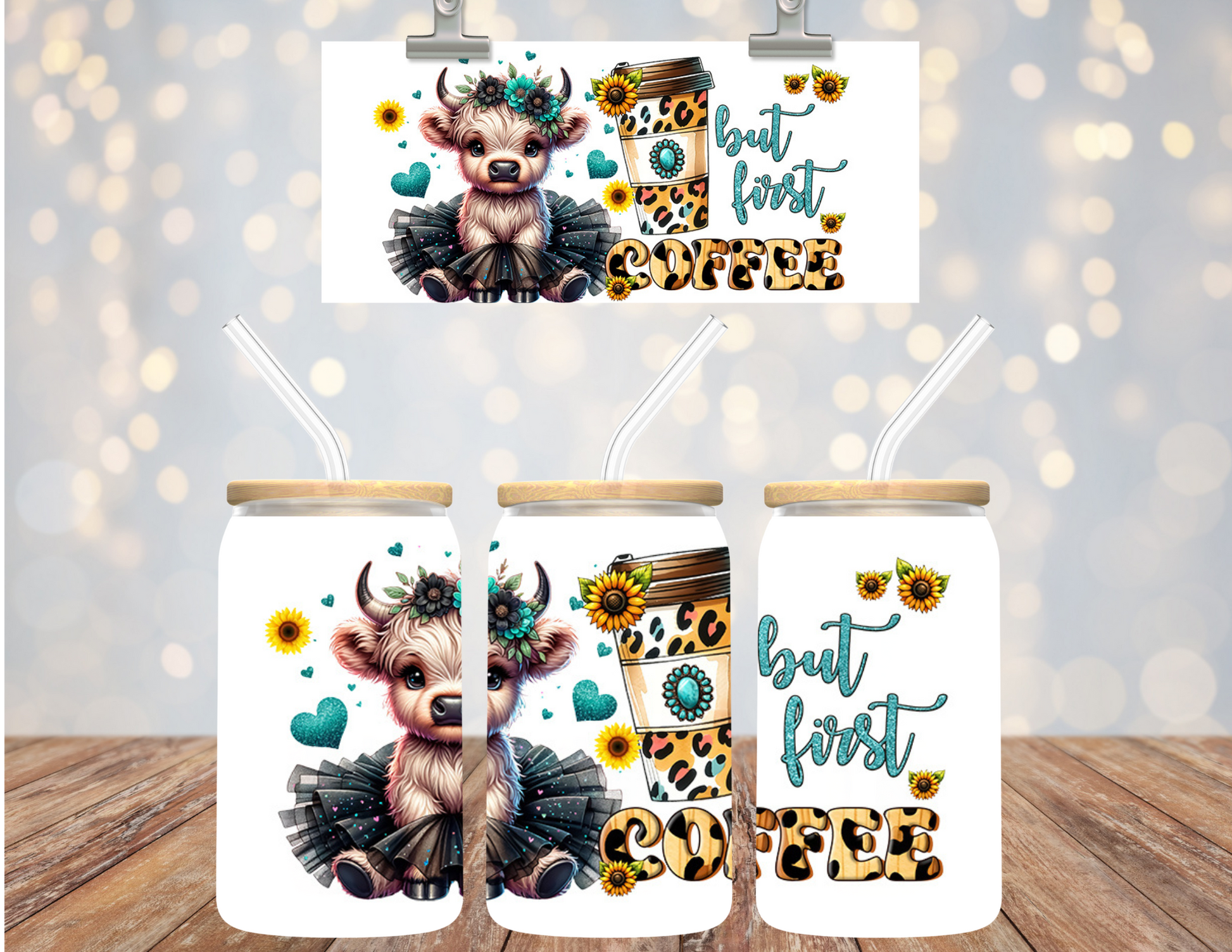 Uv Dtf Cup Wrap Cow but first coffee 612