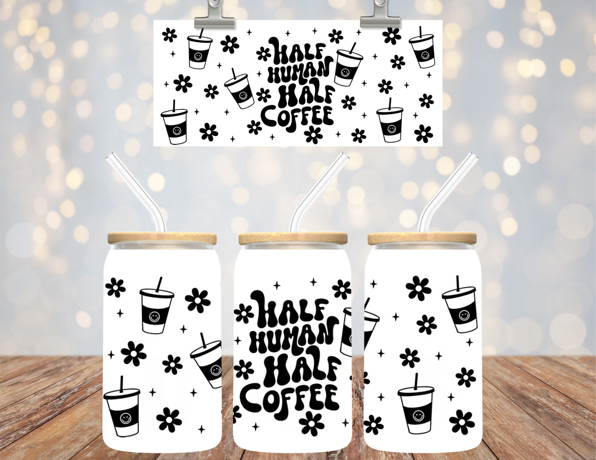 Uv Dtf Cup Wrap Half Human Half Coffee 598