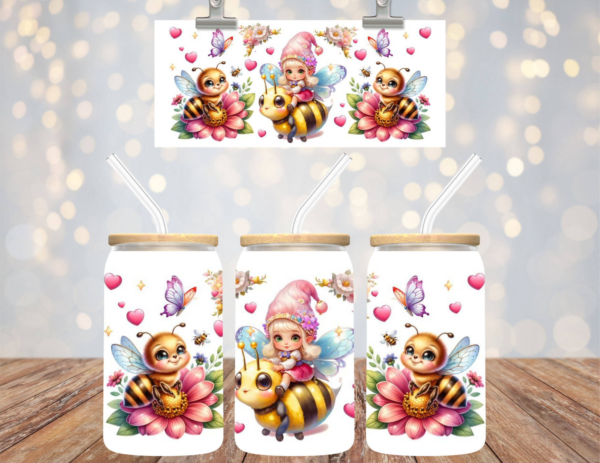 Uv Dtf Cup Wrap Pink Bee Butterfly Fairy 699