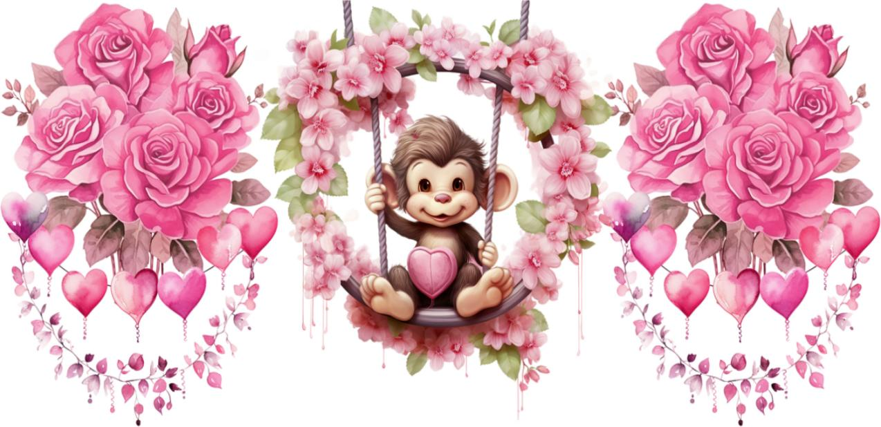 Uv Dtf Cup Wrap Pink Flower Monkey 205