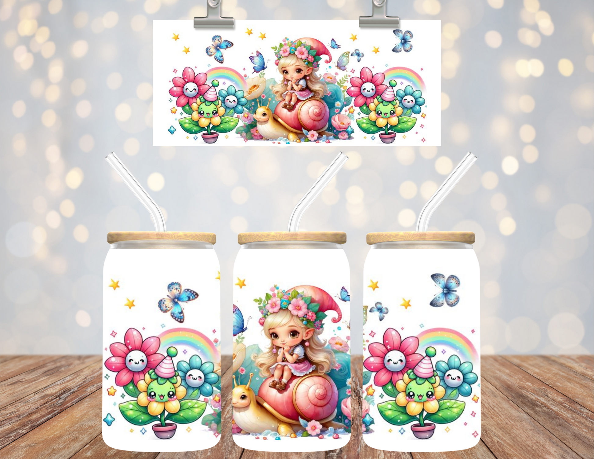 Uv Dtf Cup Wrap Pink Snail Fairy Rainbows 693