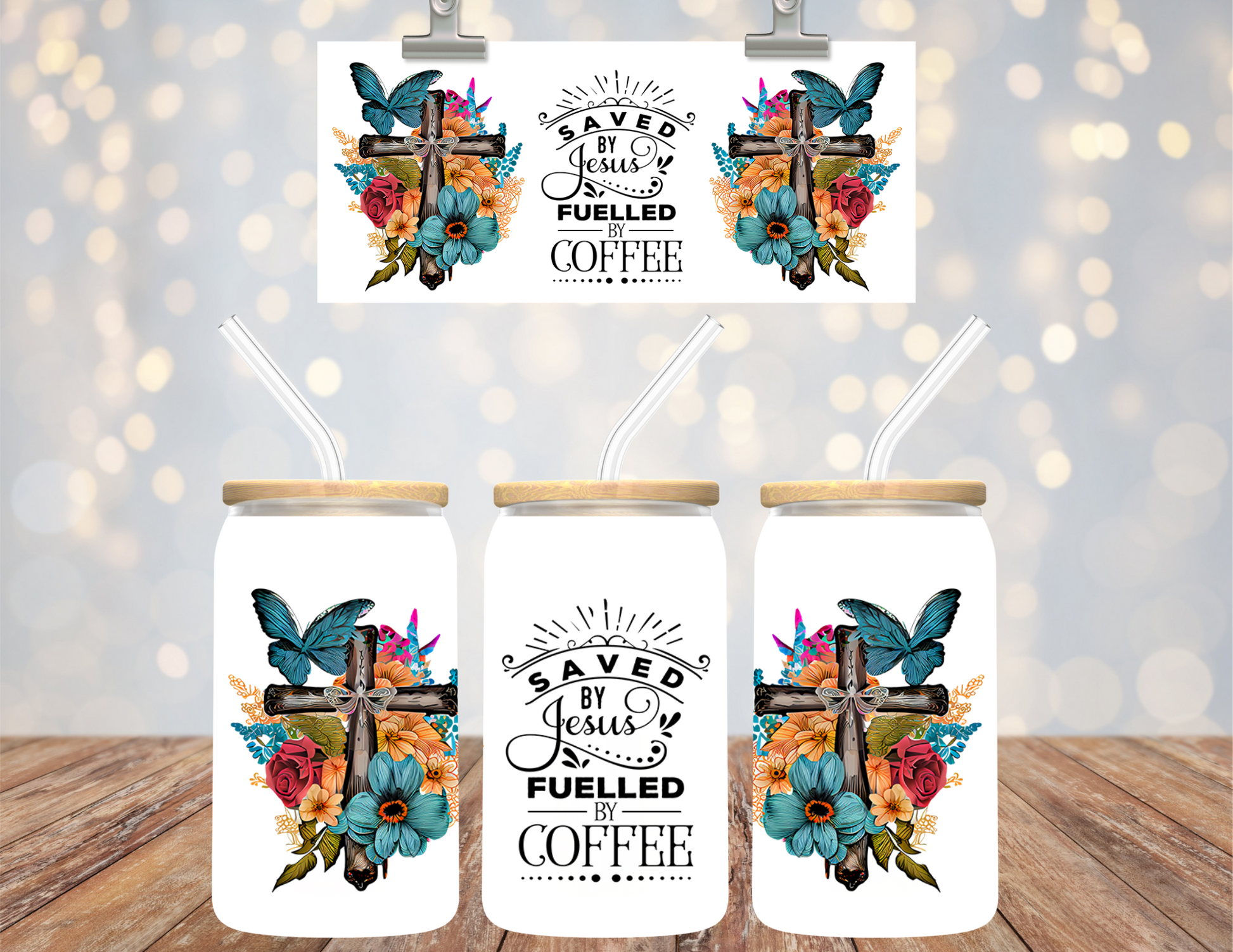 Uv Dtf Wrap Saved by Jesus Fueled by Coffee