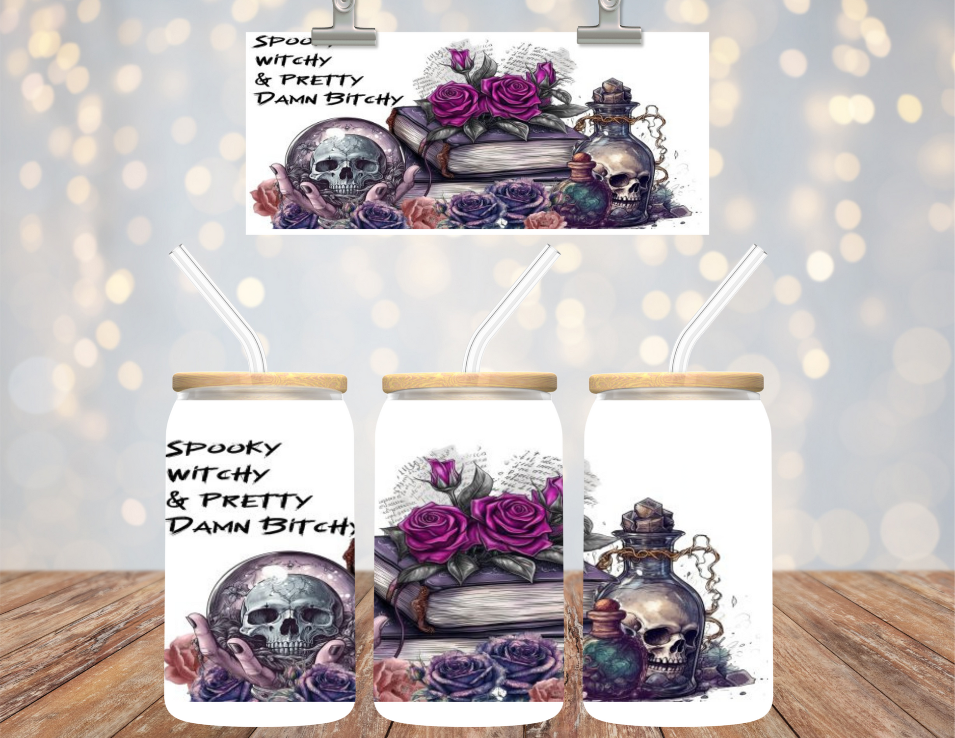 Uv Dtf Wrap Spooky Witchy & pretty d@mn b!tchy with books and skulls